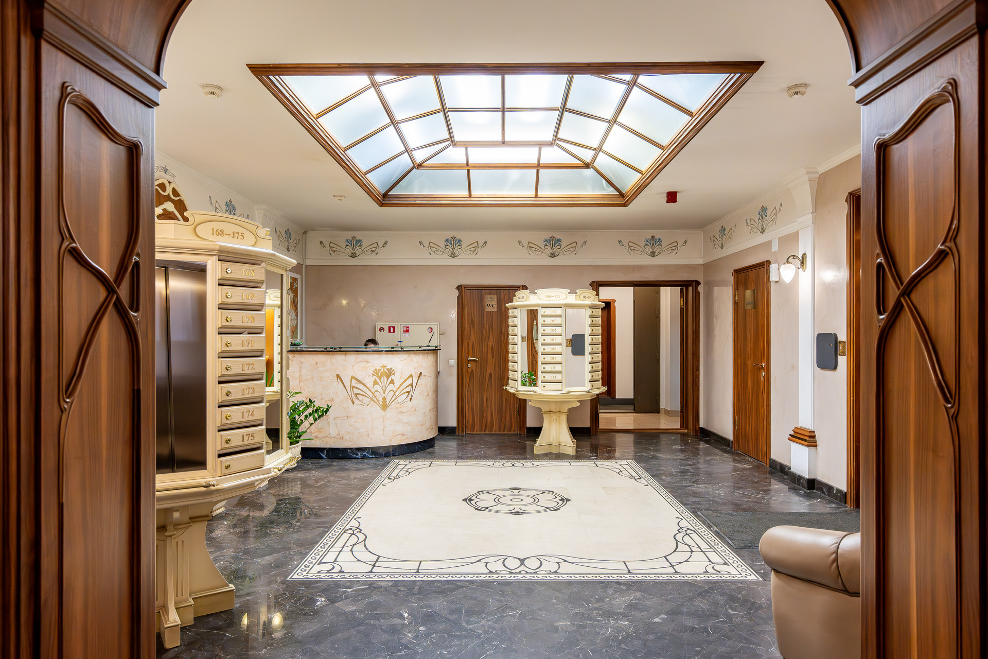 Дом с профессиональной службой охраны, консьерж, доступ только по ключ карте. Помпезная отделка входных групп.