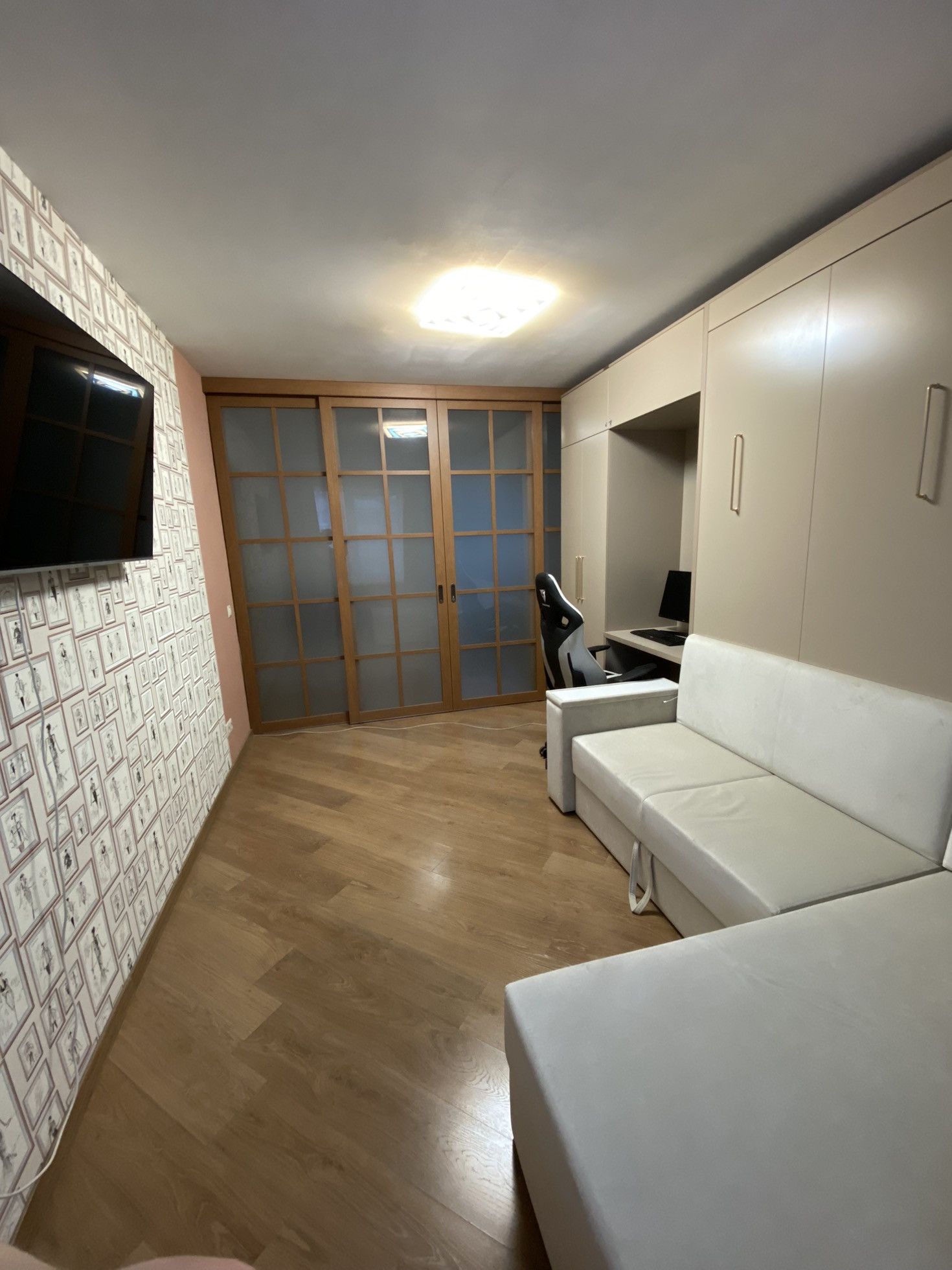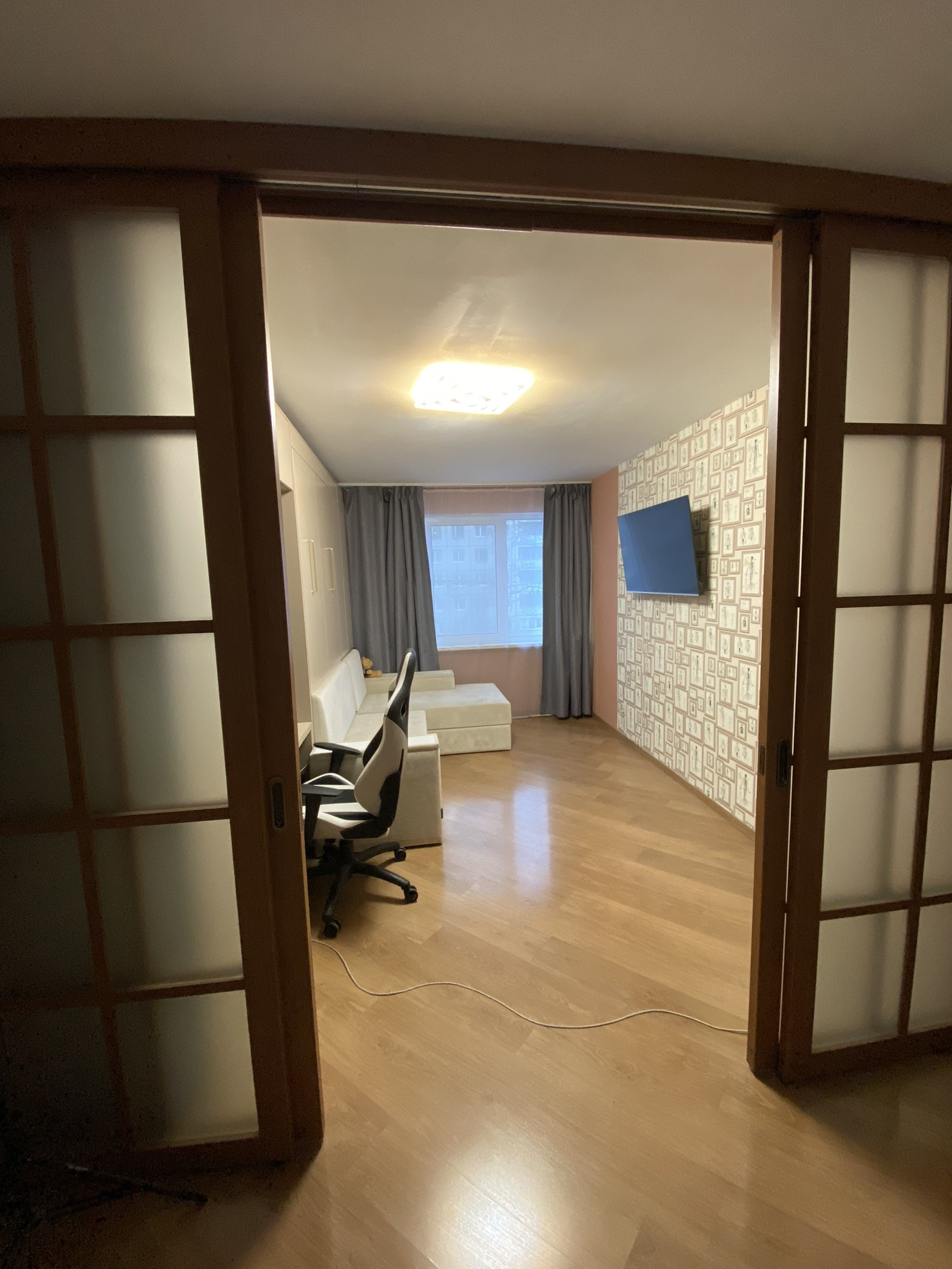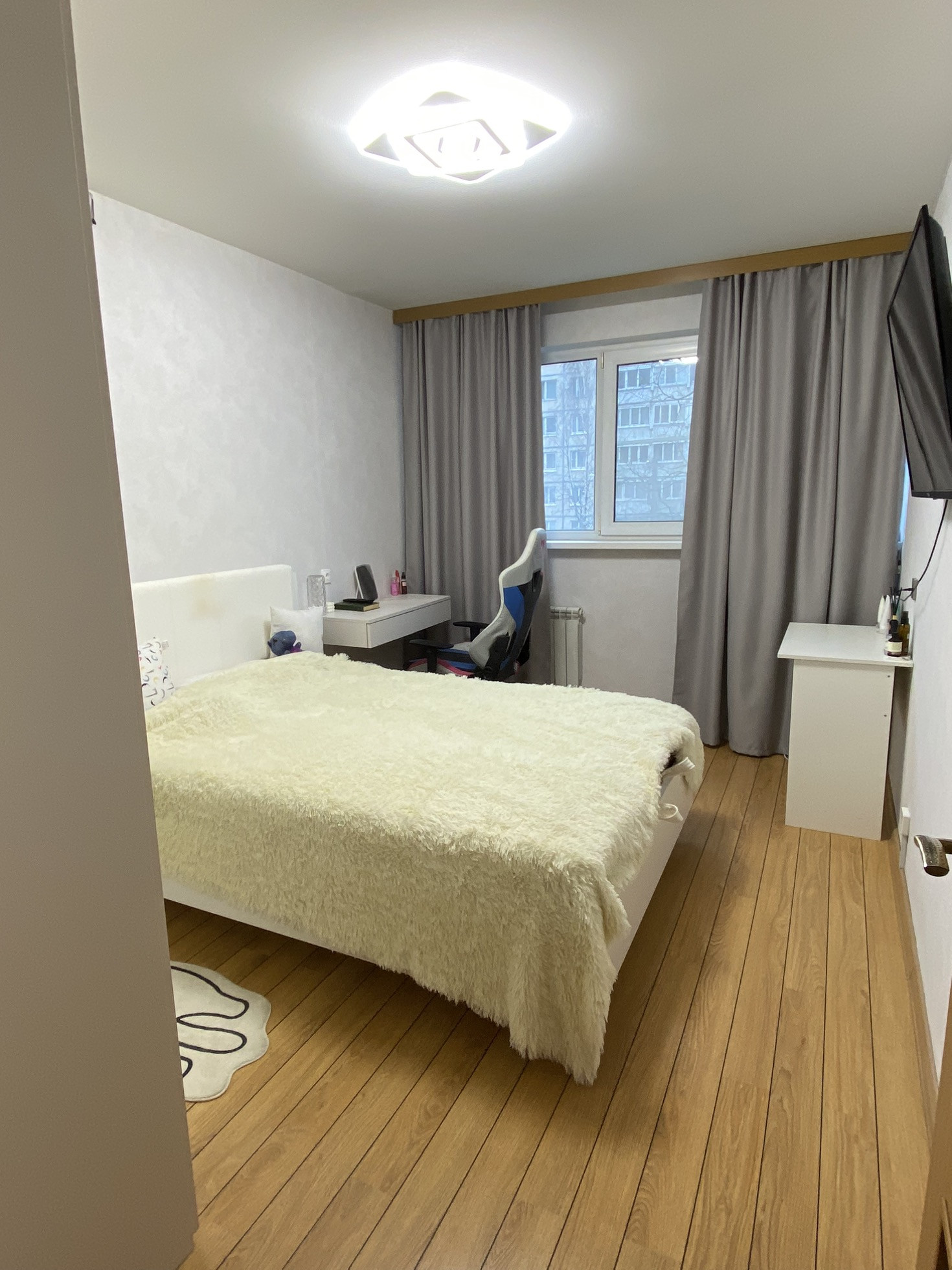Санузел раздельный. В квартире сделан ремонт для себя, выровнены стены, потолок, на полу ламинат, заменены все трубы, обновлены счетчики на воду.