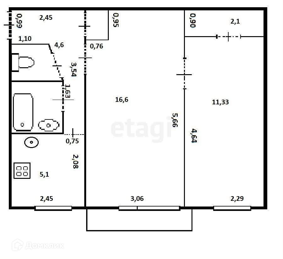 Балкон, лоджия 1 балкон