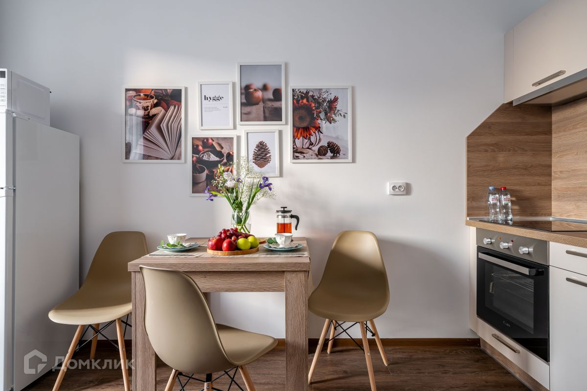В кухне-гостиной все обустроено для приготовления вкусных блюд и комфортного времяпрепровождения: кухонная зона оборудована варочной панелью, встроенным духовым шкафом,холодильником, вытяжкой и СВЧ, столом со стульями, в гостиной зоне установлен диван, который при необходимости возможно преобразовать в двуспальное место.