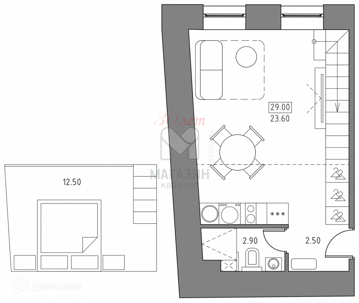 Общая площадь 29 м2