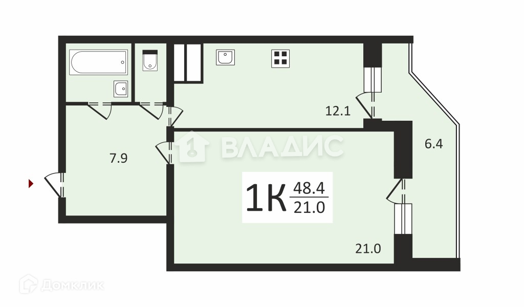 Балкон, лоджия 1 лоджия