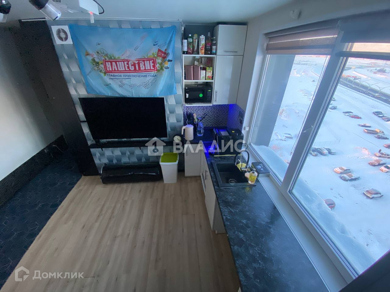 + Во всей квартире большие, панорамные окна. Выходят на южную и западную стороны, что обеспечивает студии много света. Также за счет 2-х смежных окон в комнате квартира хорошо вентилируема.