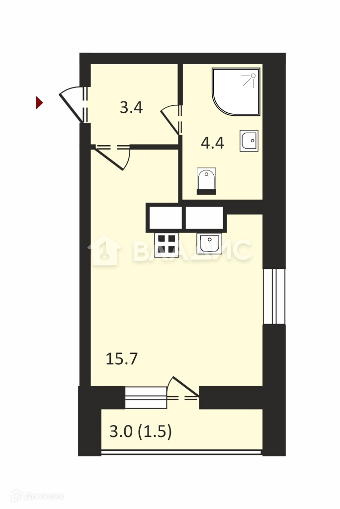 + Студия обладает эргономичной планировкой: кухня-спальня 15.7м2 с гарнитуром вдоль видового окна и зонированным рабочим местом, вместительная лоджия с панорамным остеклением, совмещенный санузел с джакузи и прихожей со встроенным шкафом-купе.