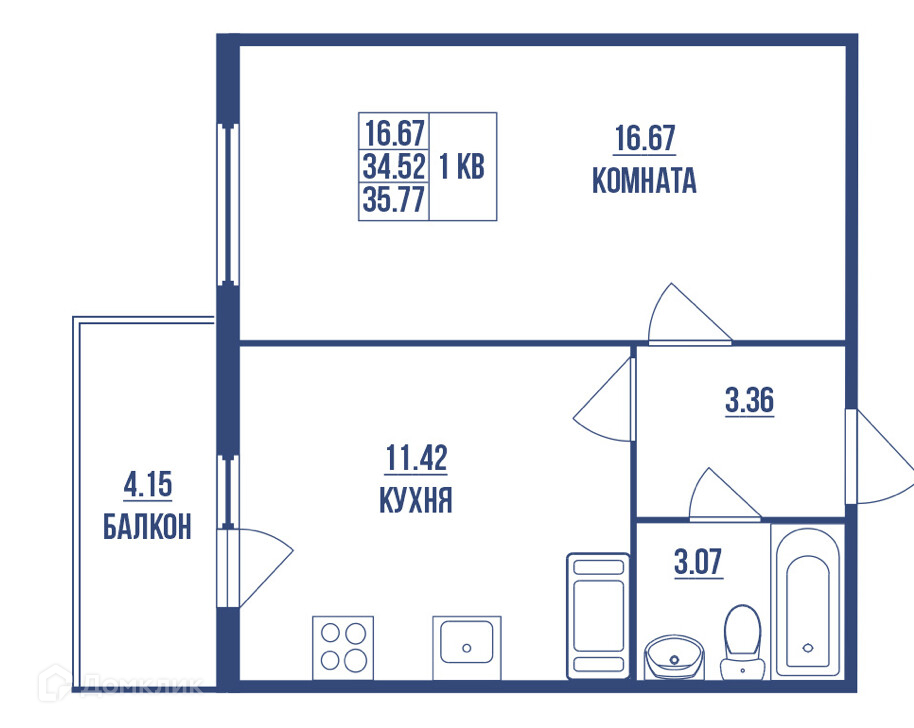 Общая площадь 35.77 м2