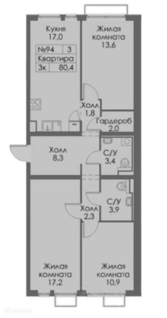 Общая площадь 80.4 м2