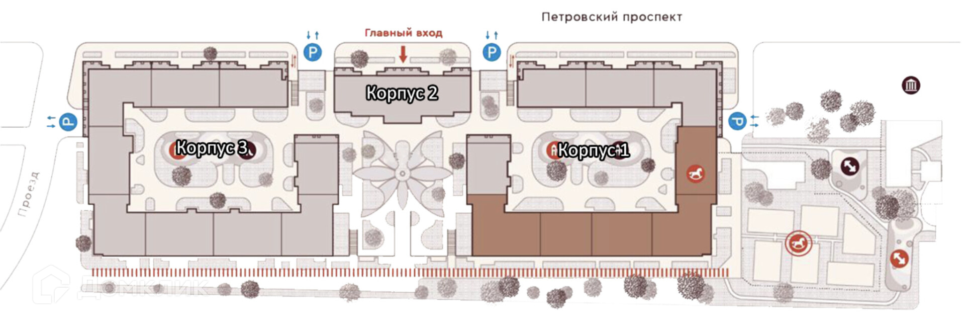 В корпусах предусмотрена многоступенчатая очистка воды и установлены бесшумные лифты с отделкой класса «люкс» европейских производителей типа «Schindler» и «ThyssenKrupp». Холлы и места общего пользования оформлены согласно индивидуальному дизайн-проекту студии Ирины Санцыковой. На первых этажах расположены коммерческие помещения, отделенные от жилой части. На закрытой территории реализована концепция благоустройства «ДОМ И ПАРК» с зелеными зонами, деревьями и кустарниками и местами для отдыха и прогулок. Для автовладельцев предусмотрен двухуровневый отапливаемый подземный паркинг на 478 мест.