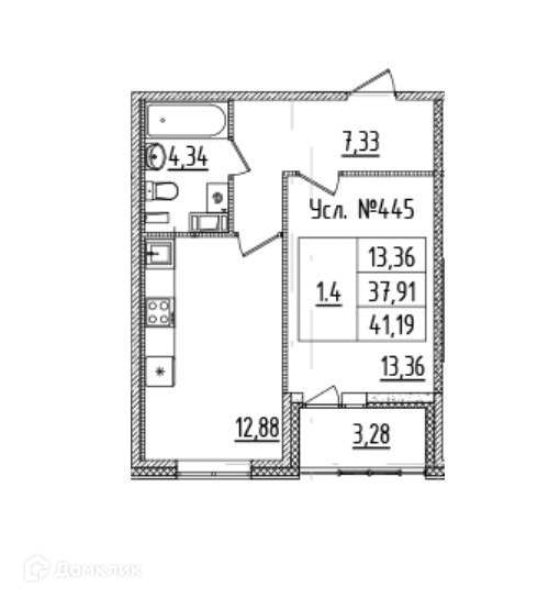 Общая площадь 38 м2