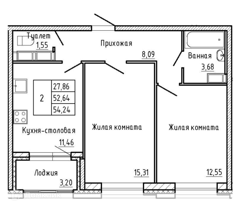 Общая площадь 54.24 м2