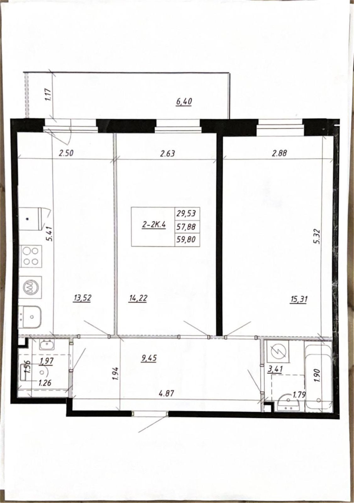 Общая площадь 60 м2