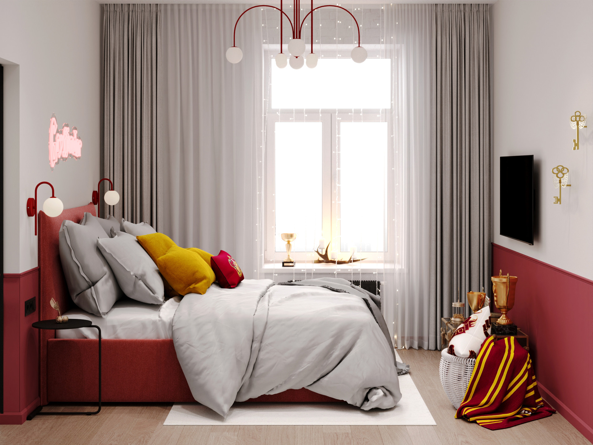— продуманный интерьер в стилях 4 факультетов