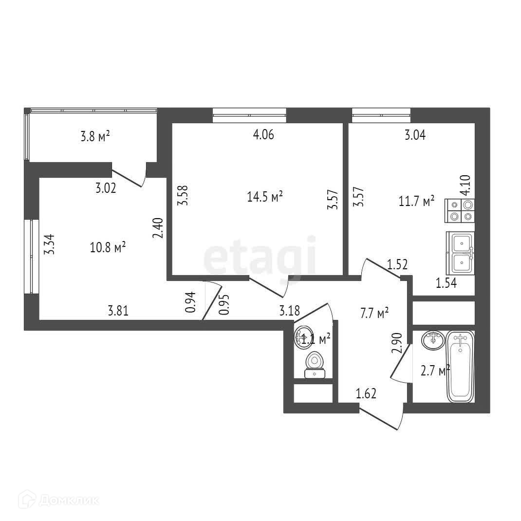 Площадь кухни 11.7 м2