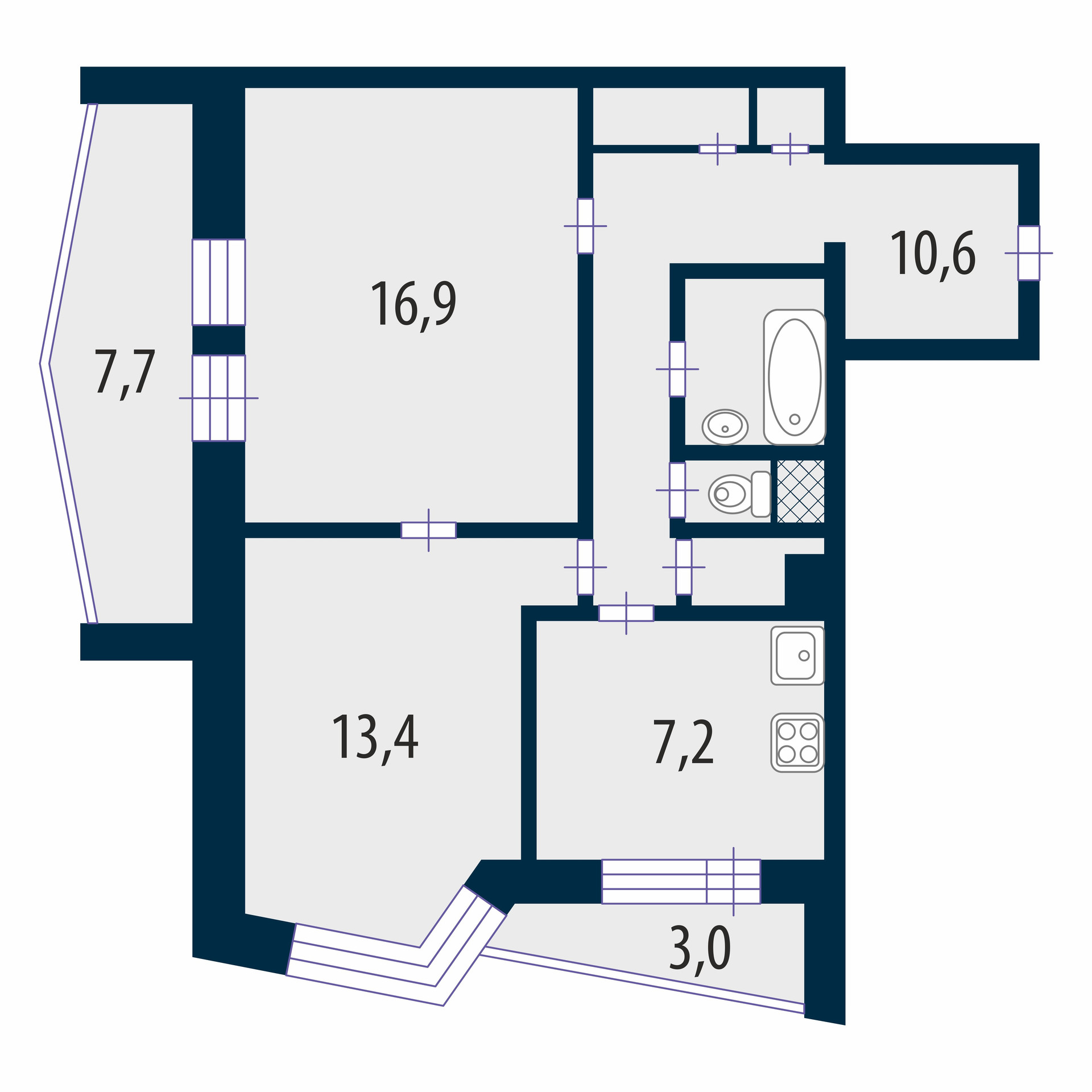 Общая площадь 55.3 м2