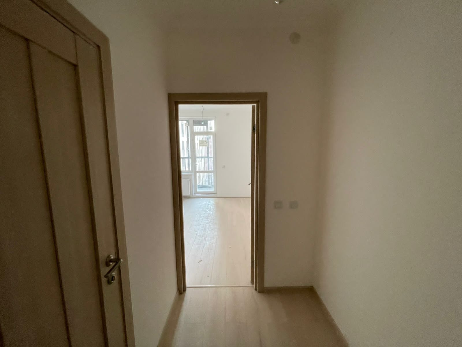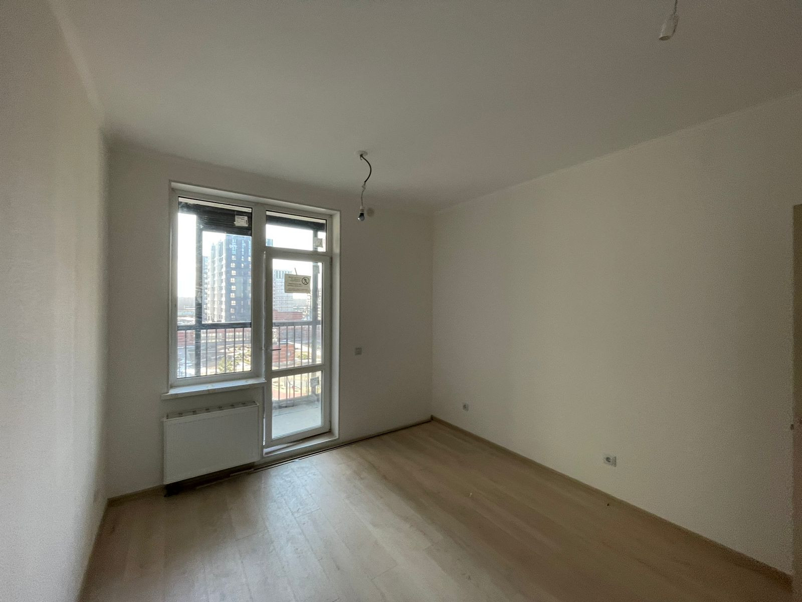 В квартире выполнена полная чистовая отделка в светлых тонах, на стенах в комнате и прихожей - обои под покраску, полы ламинат, установлены все розетки и выключатели.