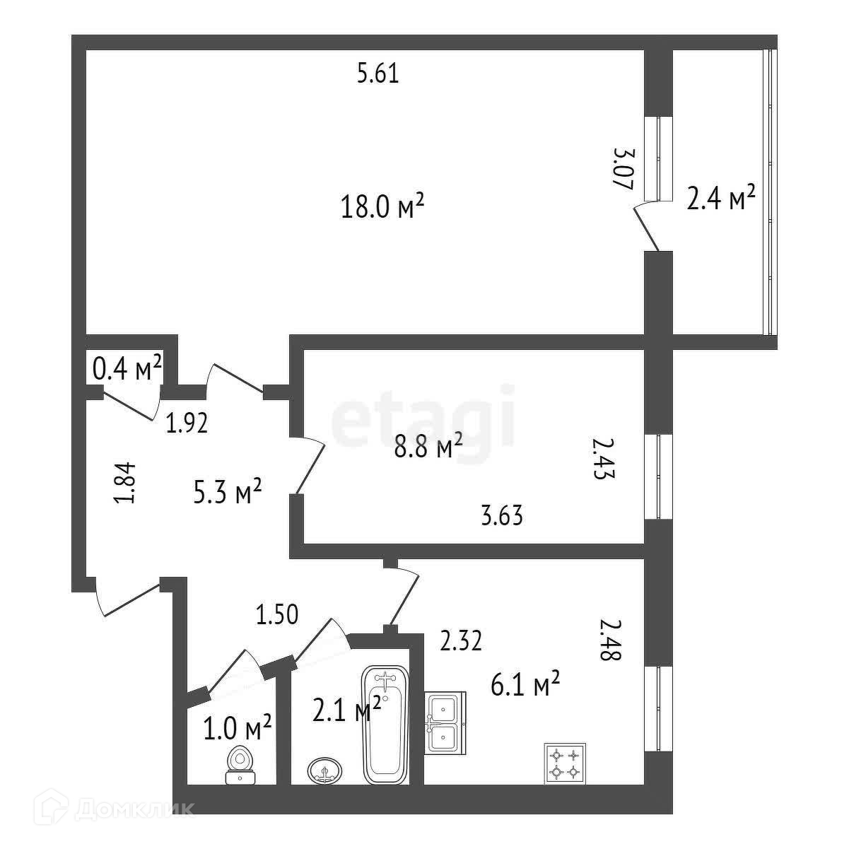 Площадь кухни 6.1 м2