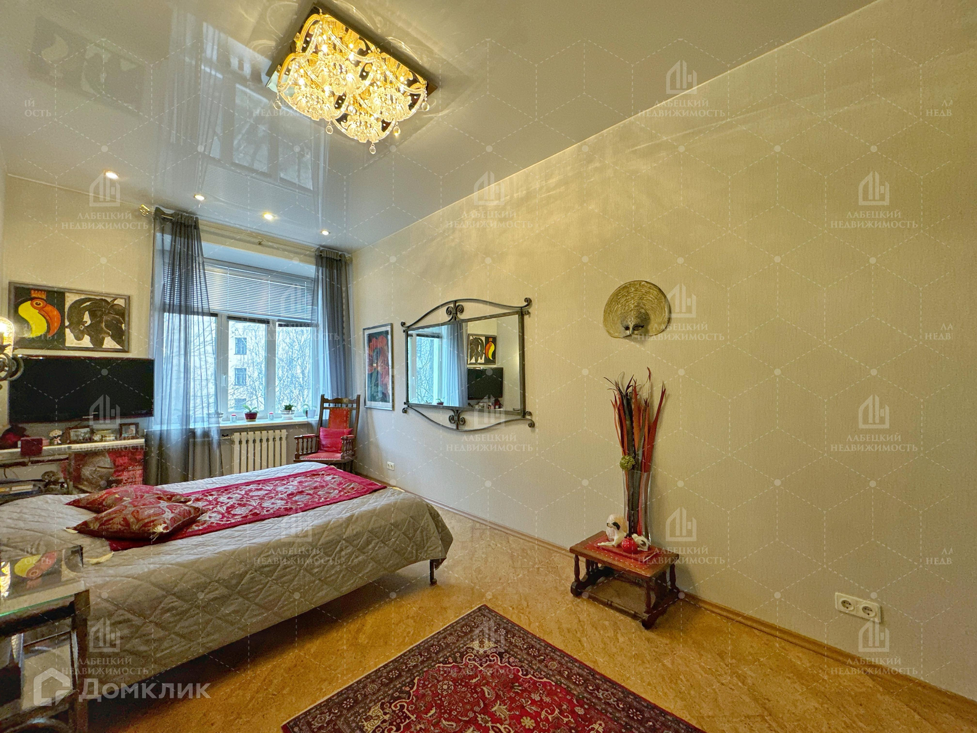 - Граничит с кухней изолированная СПАЛЬНЯ (19.5 м²), в которой установлен шкаф-купе для хранения вещей. Окна данной комнаты выходят в тихий двор.