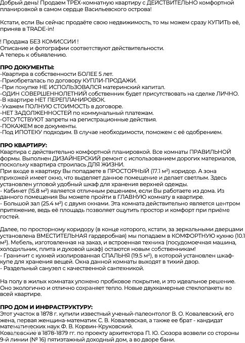 Добрый день! Продаем ТРЁХ-комнатную квартиру с ДЕЙСТВИТЕЛЬНО комфортной планировкой в самом сердце Васильевского острова!