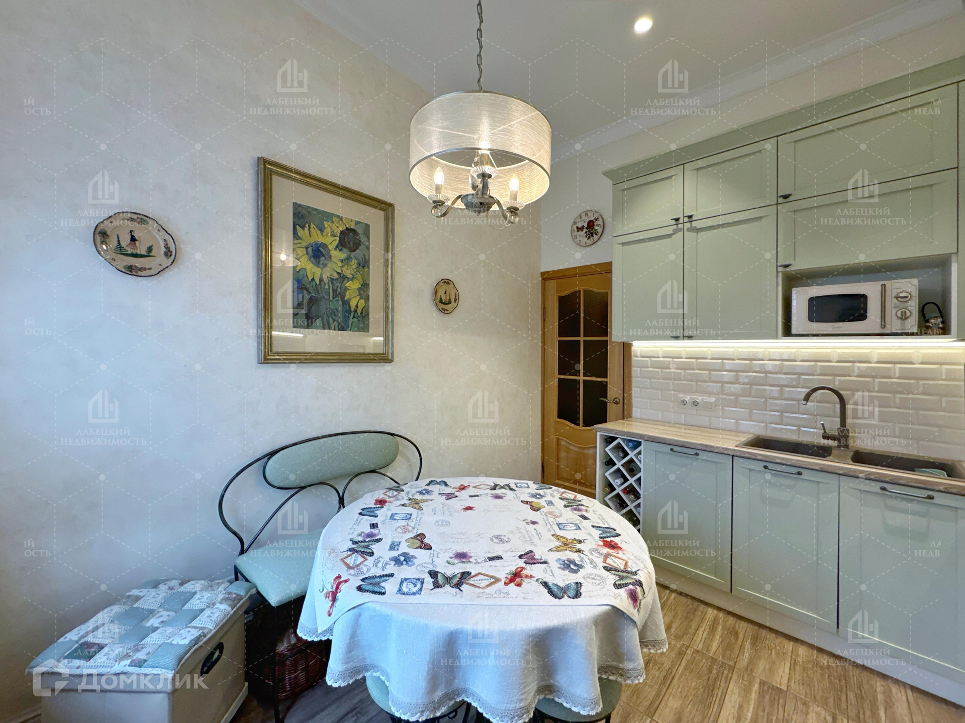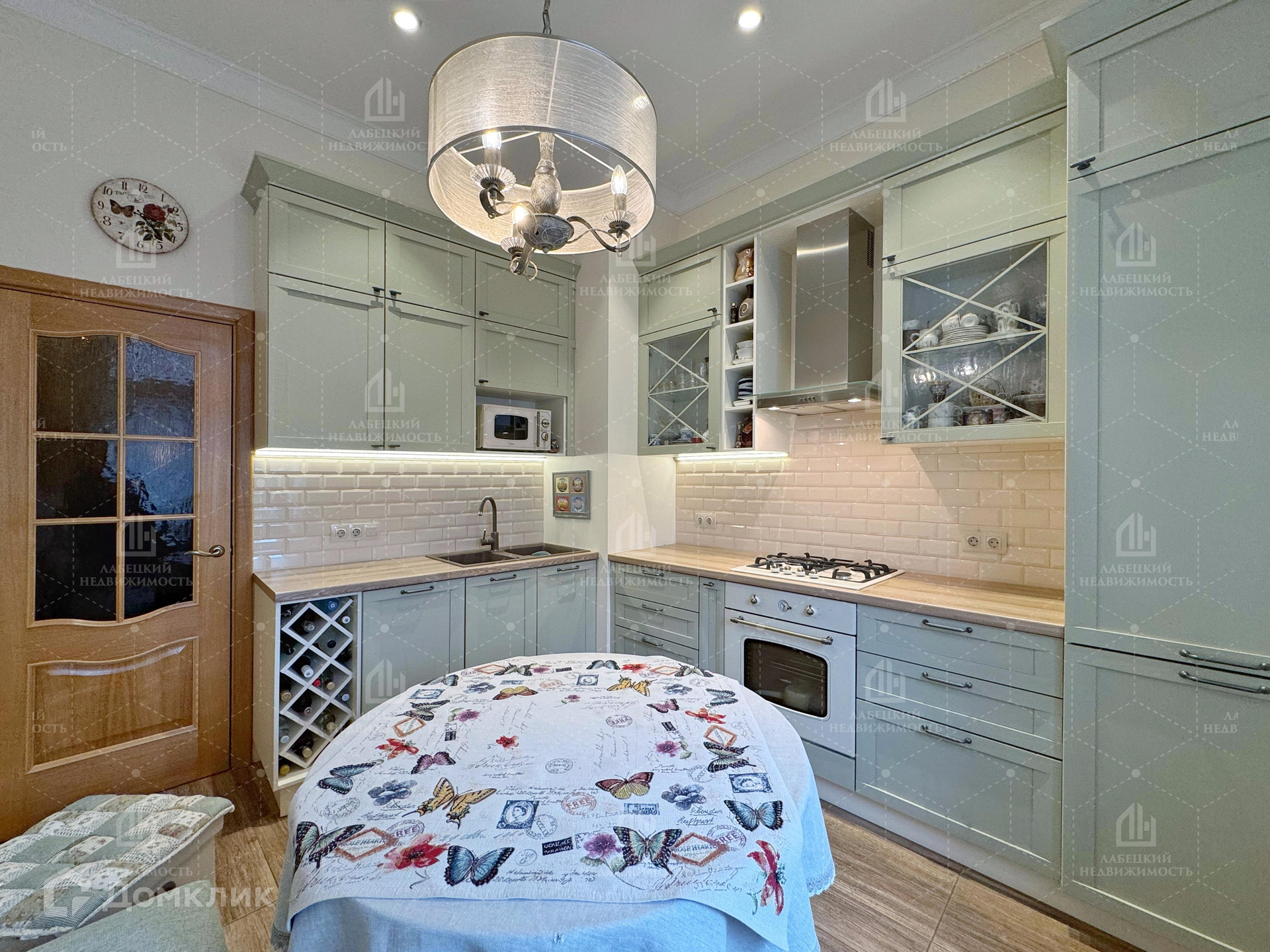 Далее, по просторному коридору (в конце которого, кстати, за зеркальными дверцами установлена ВМЕСТИТЕЛЬНАЯ гардеробная) мы попадаем в КОМФОРТНУЮ кухню (10.1 м²). Мебель, изготовленная на заказ, и встроенная техника (посудомоечная машина, холодильник, плита и духовой шкаф) остаются новым собственникам!