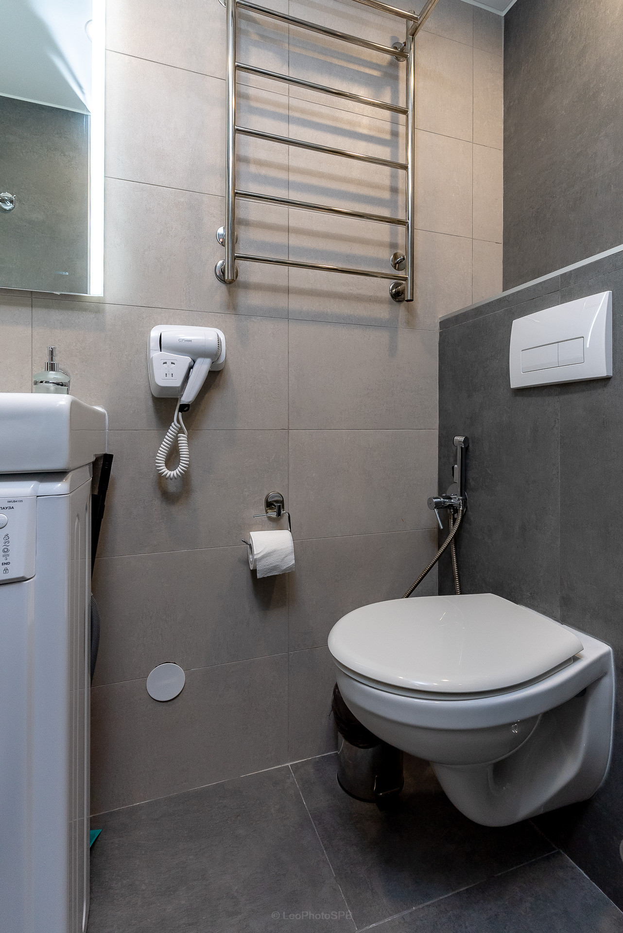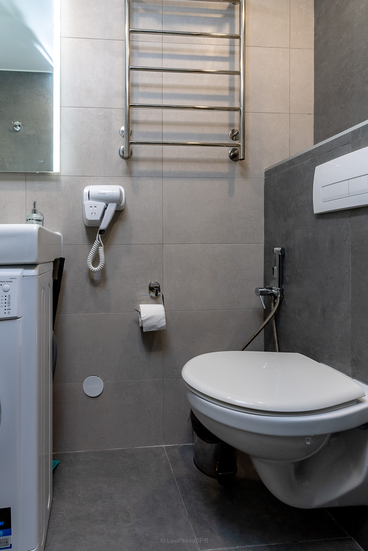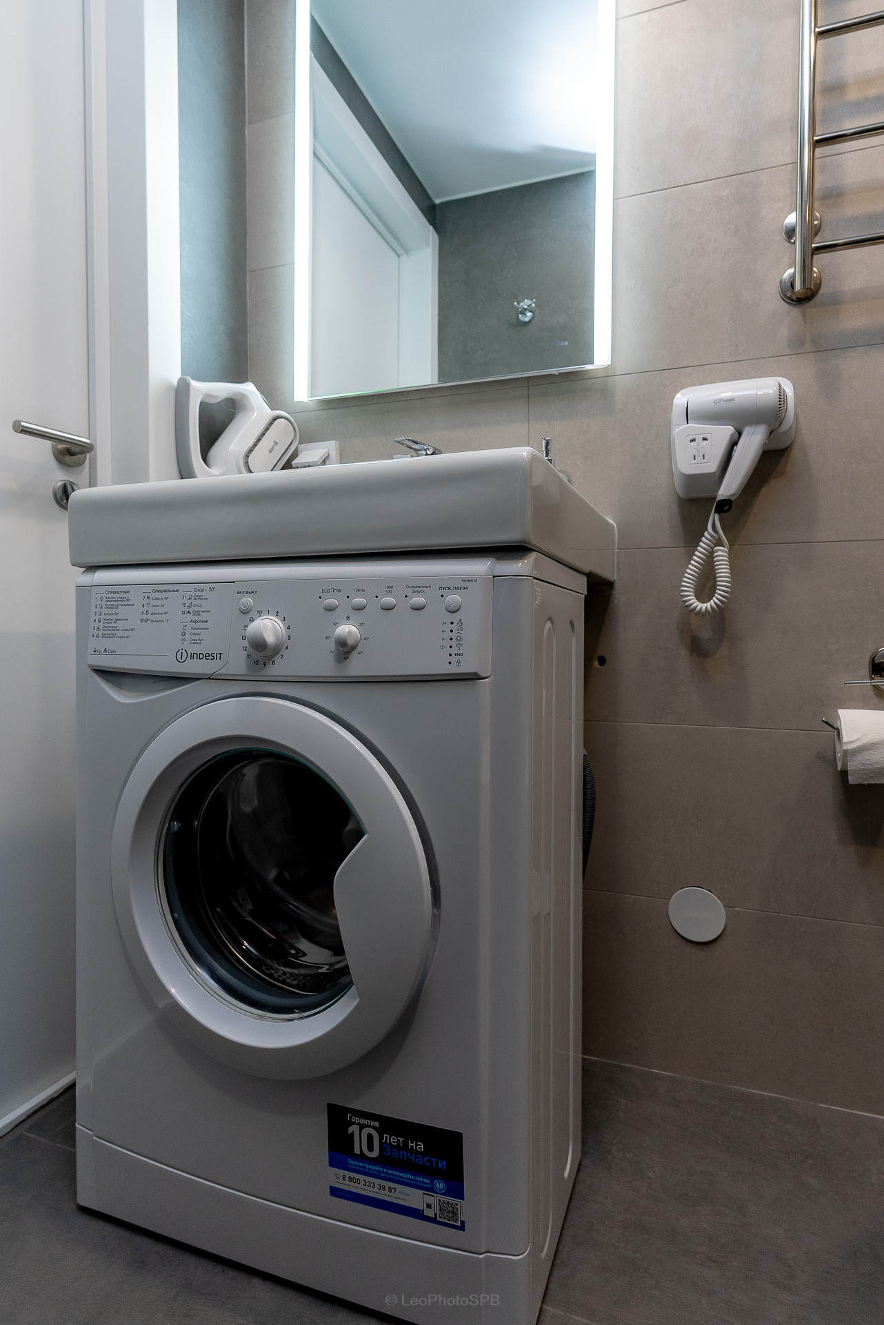 Дополнительны мы установили стиральную машину и шкафы для хранения.
