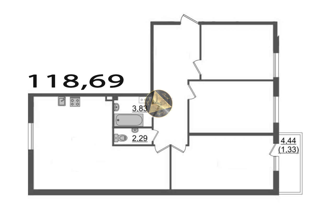 - Общая площадь квартиры 118,69 м2.