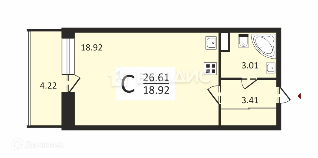 Общая площадь 25.3 м2