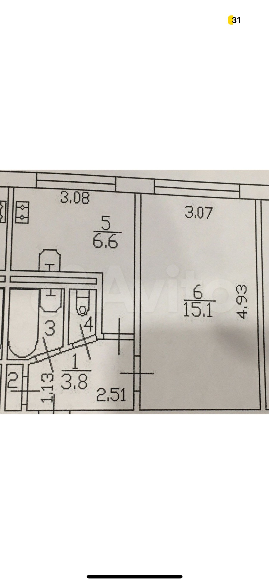 Жилая площадь 15.3 м2