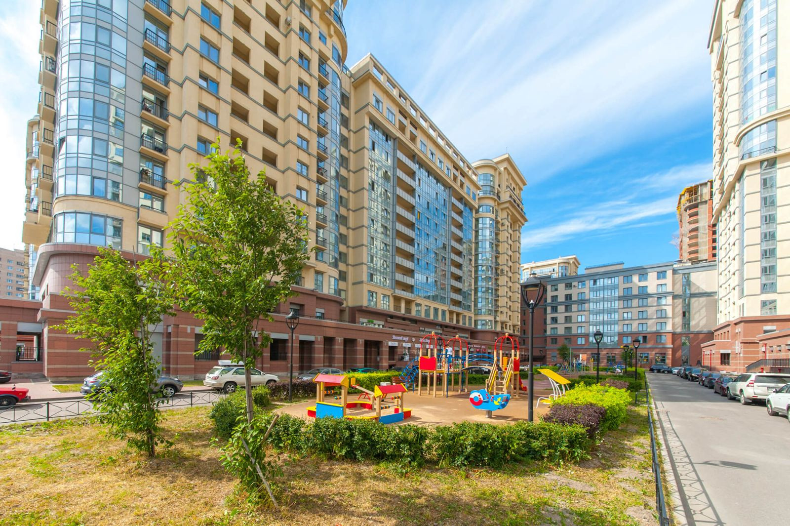 В закрытом комплексе множество магазинов, кондитерских, салонов красоты, учебных комплексов ( разные курсы), фитнес, прекрасно оборудованные детские зоны.