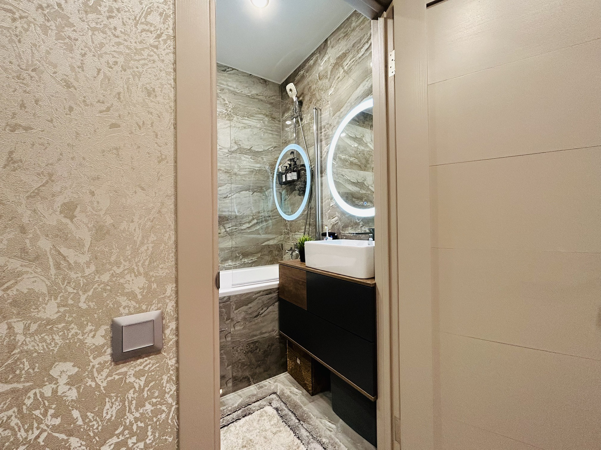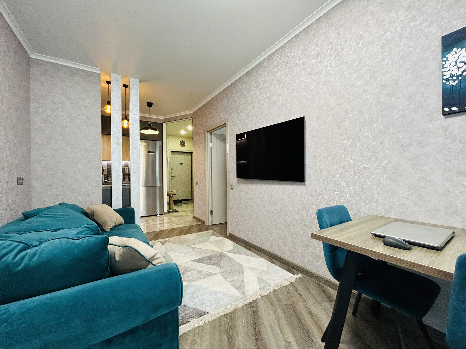 Общая площадь 41.3 кв.м без учета балкона, совмещенный санузел. Во всей квартире выполнен качественный ремонт, В просторной кухне-гостиной стоит новый кухонный гарнитур со встроенной техникой. А так же :огромная лоджия, квартира находиться в 8-ми этажной секции,что уменьшает количество квартир, подземная и наземная парковка.