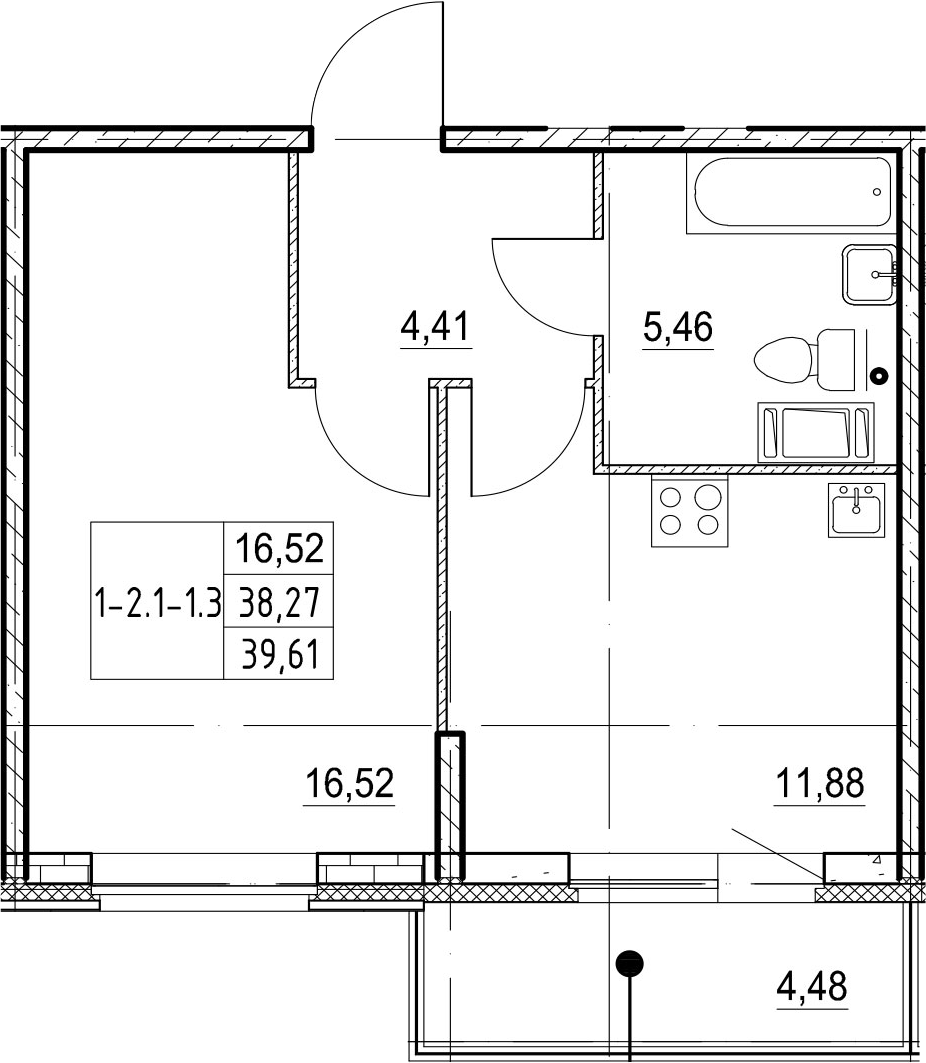 Балкон, лоджия 1 балкон