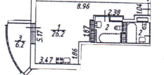 Жилая площадь 24.2 м2