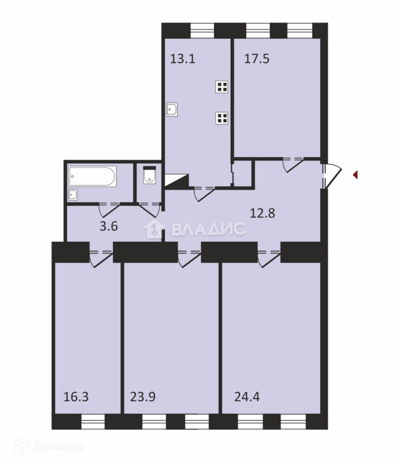 жилая 82,1 м2 ! (24,4 + 23,9 + 17,5 + 16,3) м2