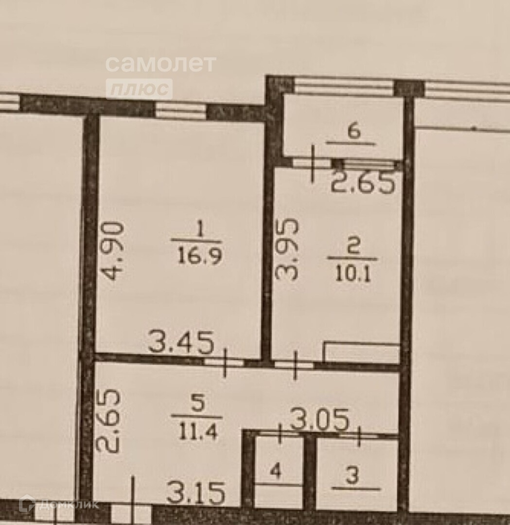 Общая площадь 42.3 м2