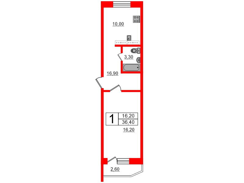Общая площадь 36.4 м2
