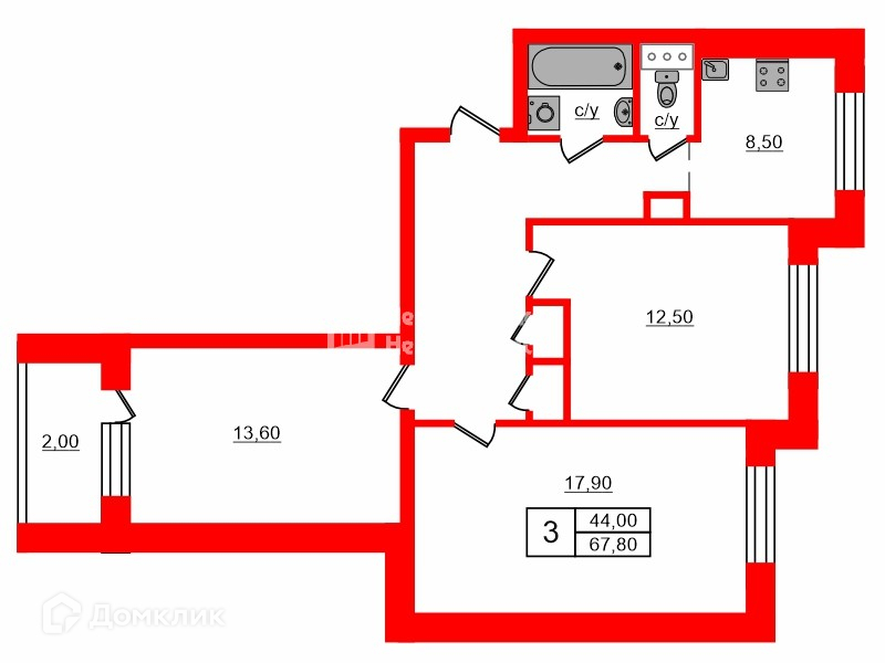 Общая площадь 67.8 м2
