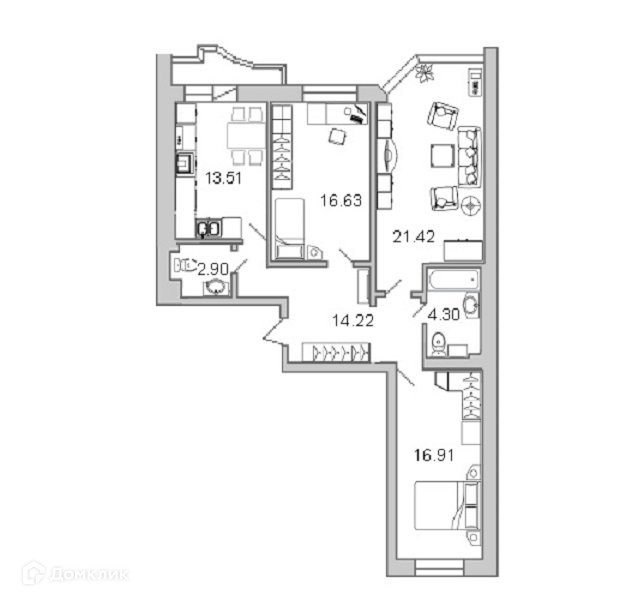 Жилая площадь 55 м2
