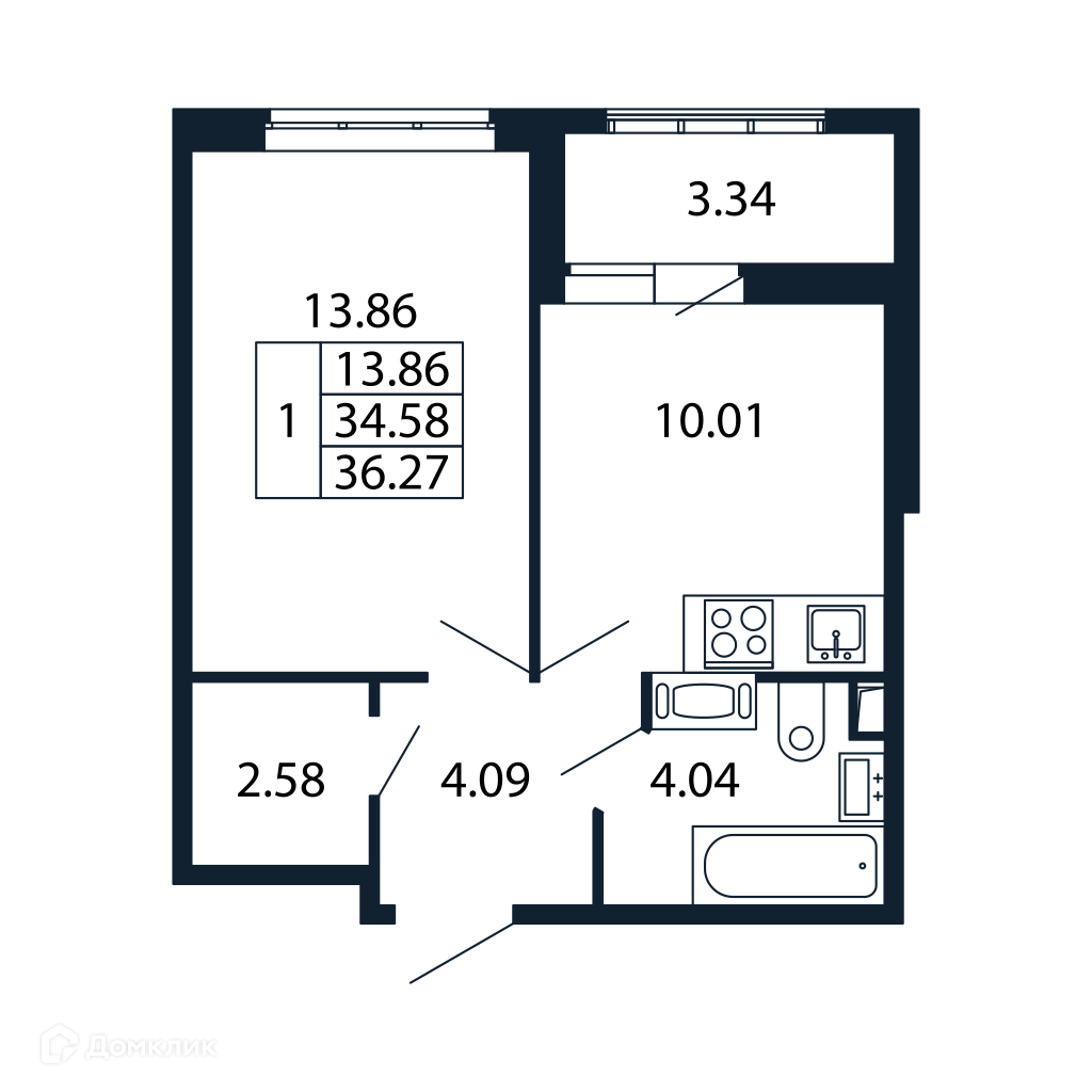 1-комнатная квартира, 35.67 м2, этаж 3 / 13, на продажу в Санкт-Петербурге, Арцеуловская аллея, 9