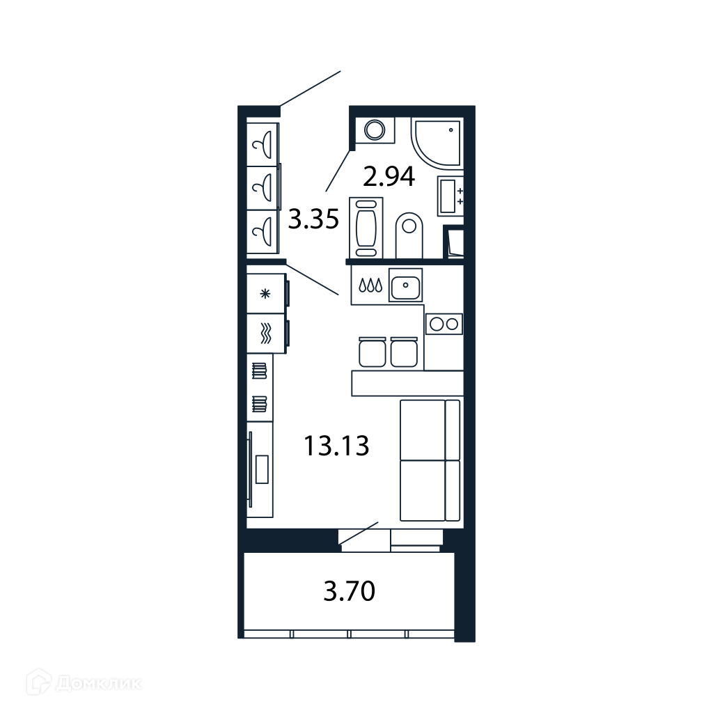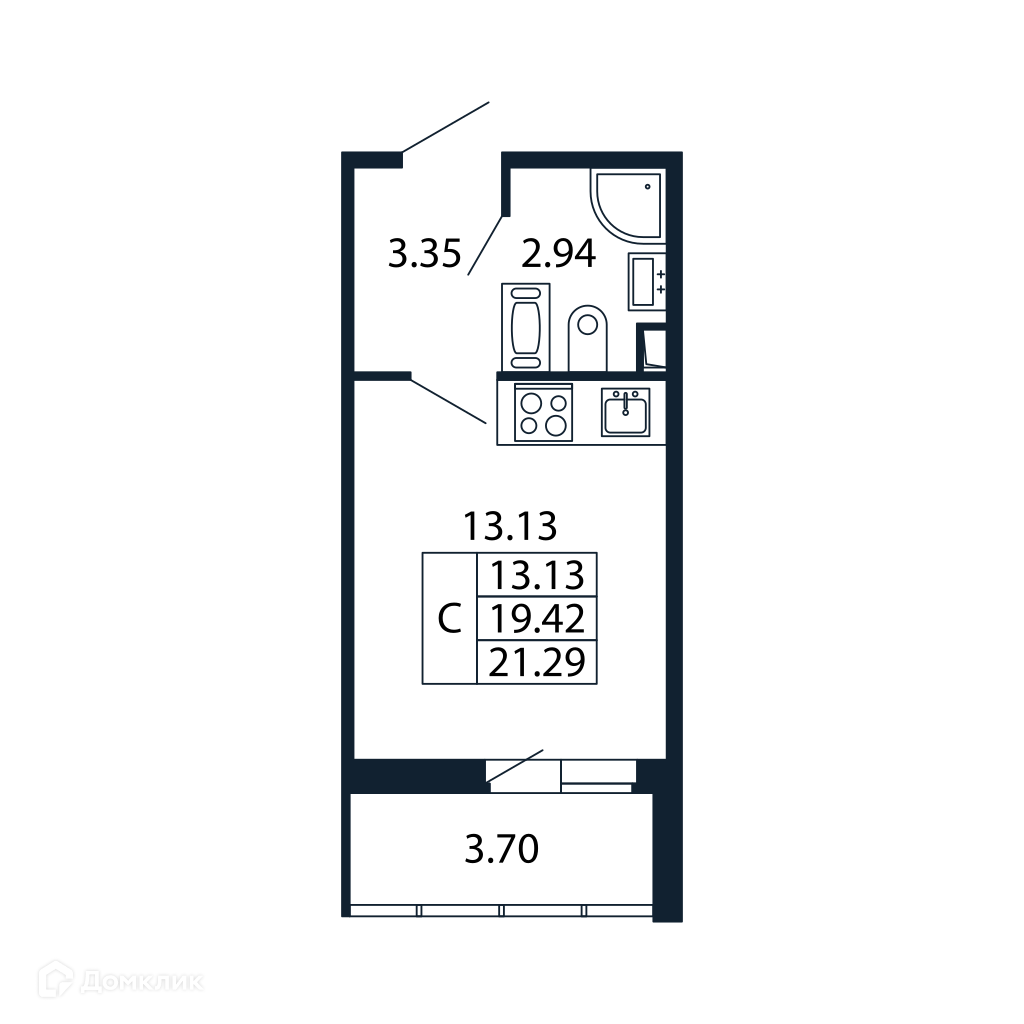 Общая площадь 20.96 м2