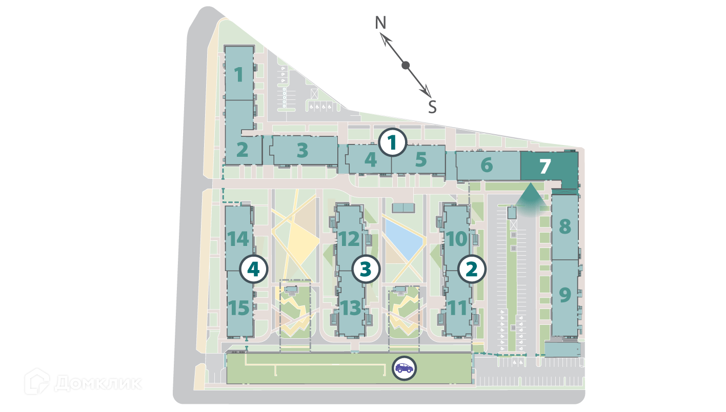 ЖК представляет собой 4 корпуса по 10-13 этажей. Корпуса расположены так, что образуют уютные безопасные дворы, при этом в них просторно и светло. Два многоуровневых паркинга вдоль улицы защищают дворы от городского шума.