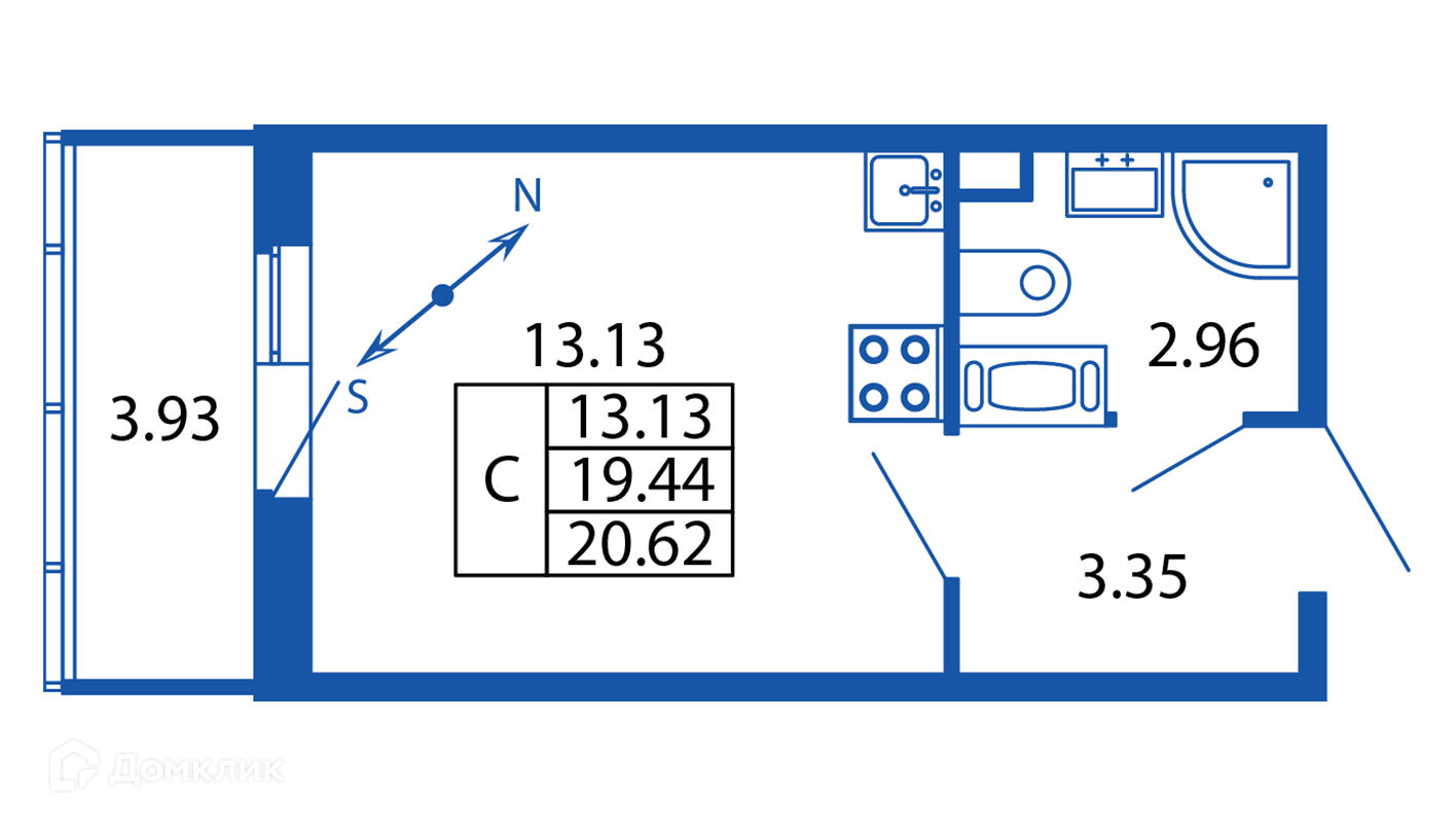 Общая площадь 20.48 м2