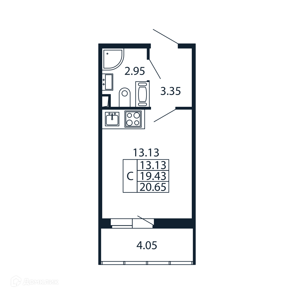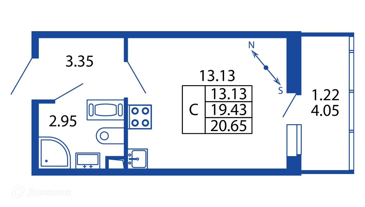 Общая площадь 20.62 м2
