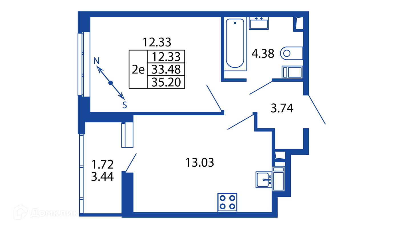 Общая площадь 35.32 м2