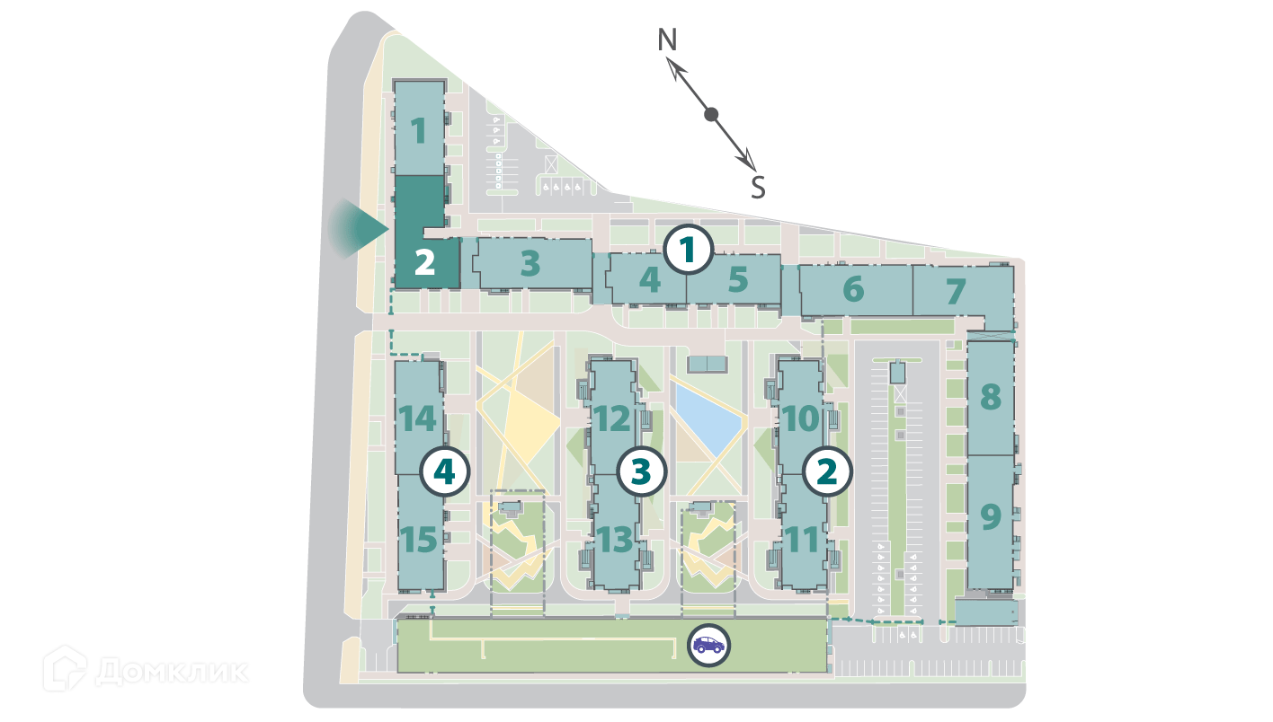 ЖК представляет собой 4 корпуса по 10-13 этажей. Корпуса расположены так, что образуют уютные безопасные дворы, при этом в них просторно и светло. Два многоуровневых паркинга вдоль улицы защищают дворы от городского шума.