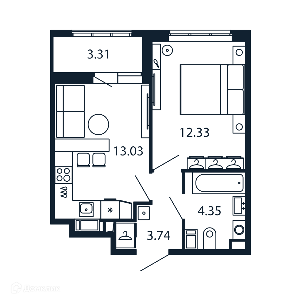 Общая площадь 34.76 м2