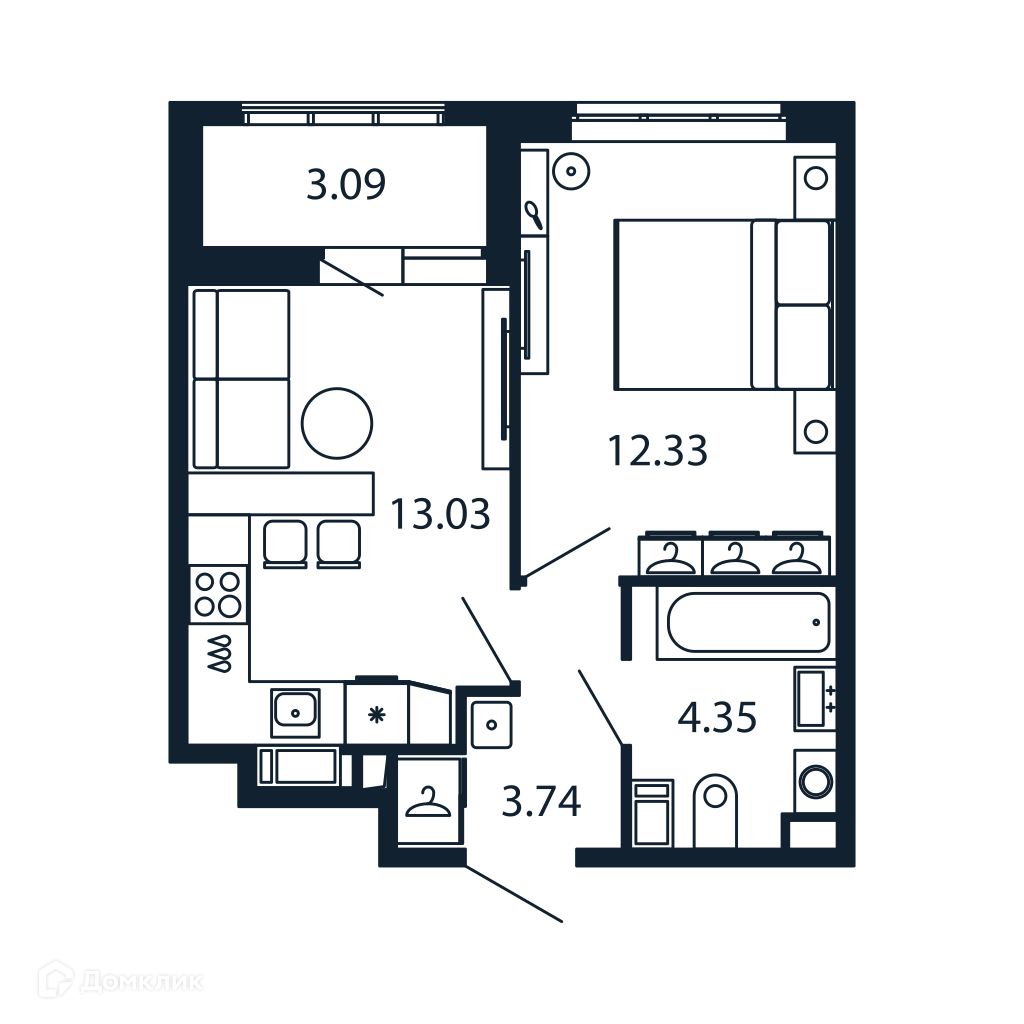 Жилая площадь 12.33 м2