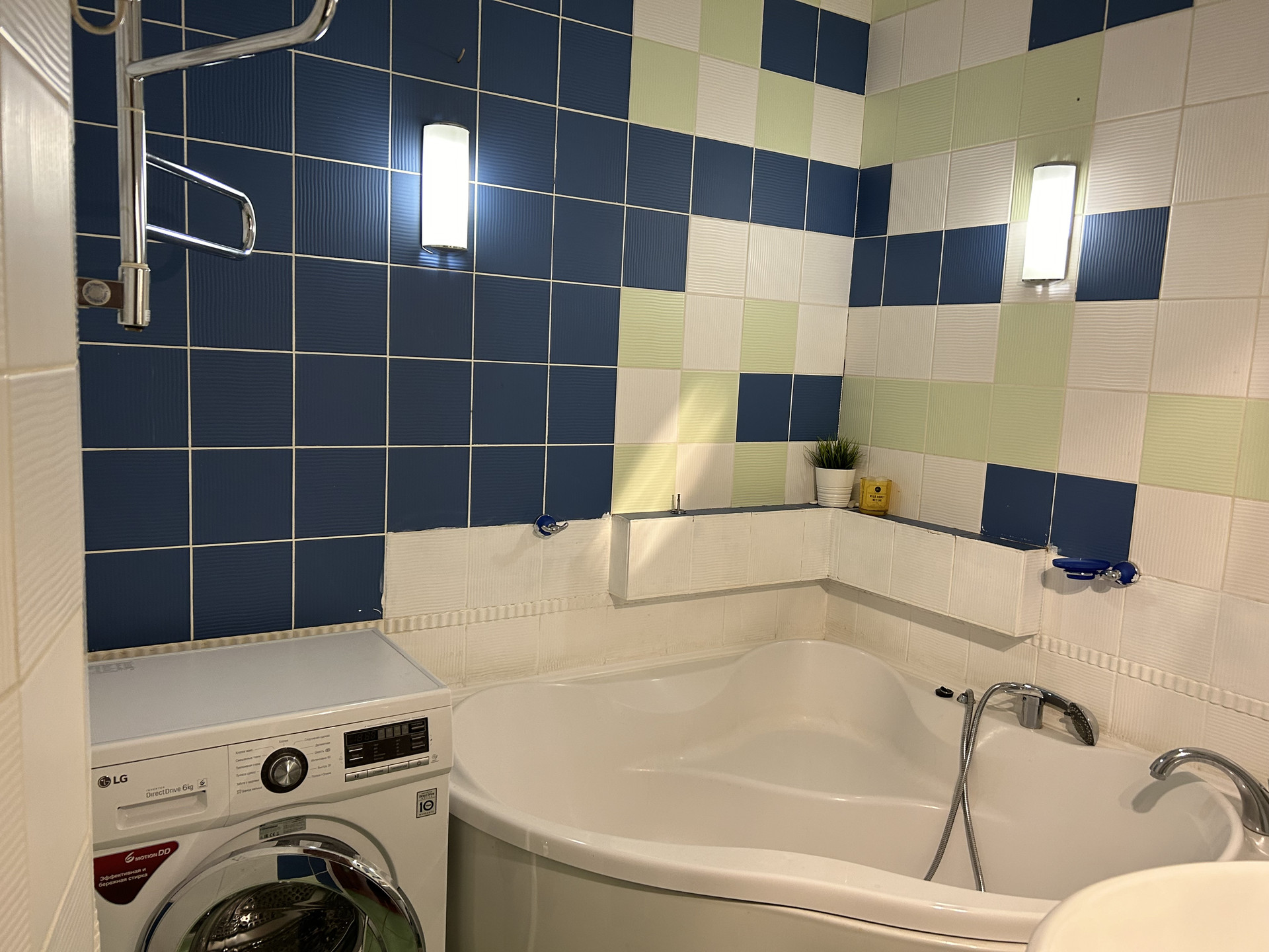 Раздельный санузел. Ванная оснащена полотенцесушителем, стиральной машинкой Bosch, установлен бойлер.