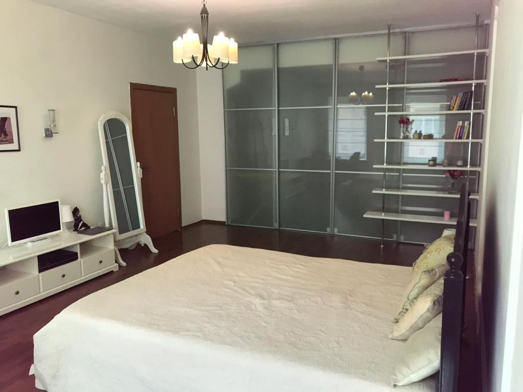 Комната 33,4 метра правильной формы с двумя окнами. Предусмотрена большая гардеробная, оснащенная штангами, полками и ящиками. Установлен кондиционер.