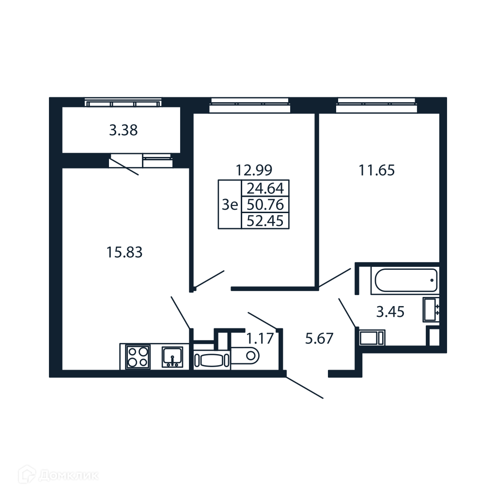 Общая площадь 51.59 м2