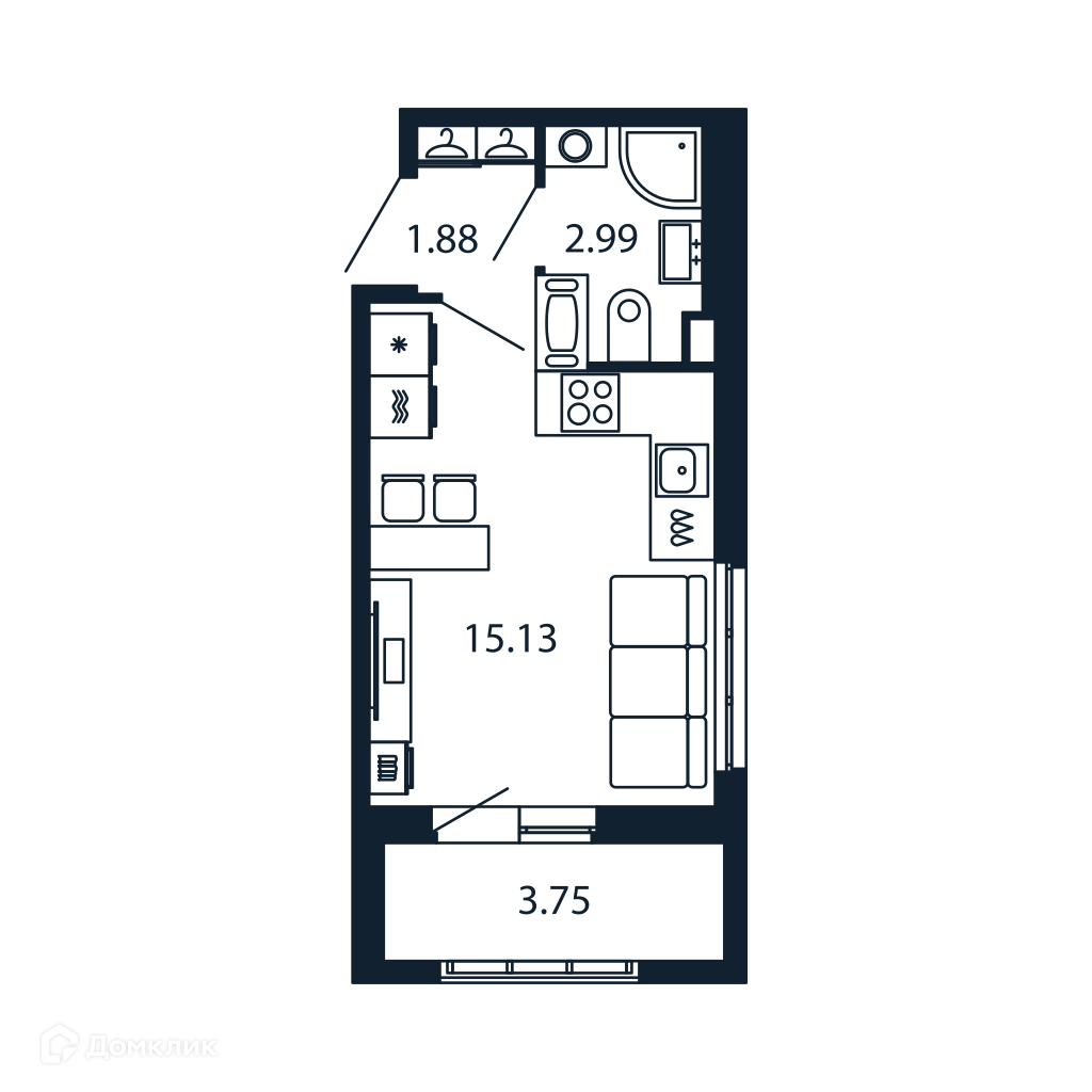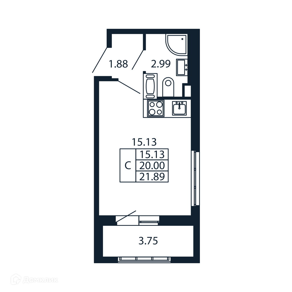 Общая площадь 21.58 м2