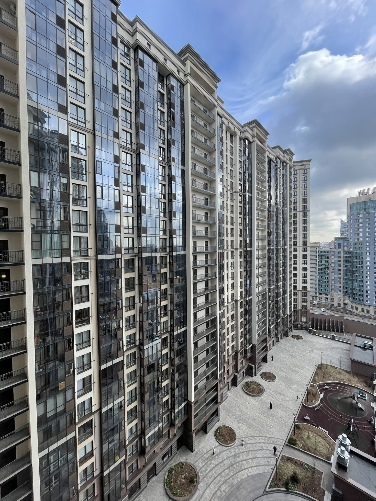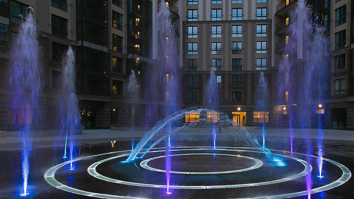 • Двор жилого комплекса это закрытое охраняемое пространство с зонами отдыха, пешеходными дорожками, современными детскими игровыми и спортивными площадками с безопасным покрытием! Украшением его является фонтан.