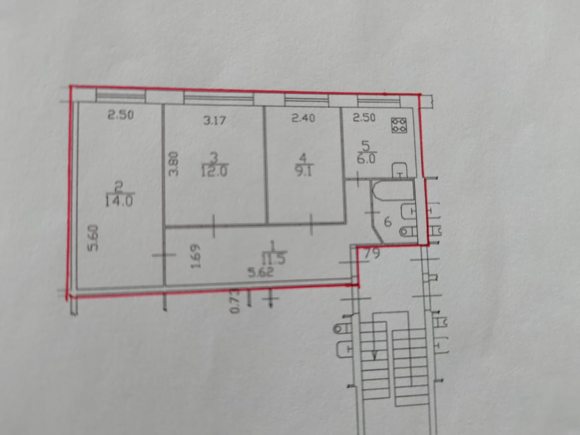 Площaдь: 55,8 кв.м. (кoмнaты 9,1+12+14) куxня – 6, потолки - 2,5 м.